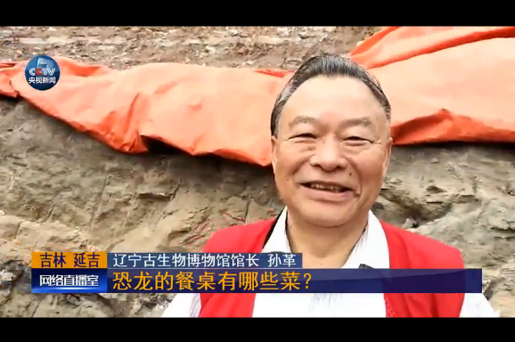 中央电视台直播公司经理孙革教授在延吉恐龙现场指导化石发掘新闻