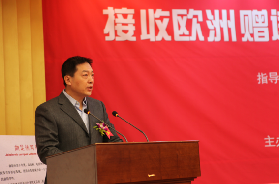 郝董事长在致辞中对各位嘉宾的到来表示热烈的欢迎,并指出,此次成功收回由欧洲捐赠的、产于我国辽西的珍贵化石标本,体现了我国《古生物化石保护条例》等法律法规日益深入人心,并得到国外各界人士的高度重视,反映了我国国际地位正在不断提高,中华民族正在不断强盛。此次接收工作的成功是辽宁省在化石保护工作具有国际影响的一个创举,它将在我国及辽宁化石保护工作史册中写下光辉的一页。