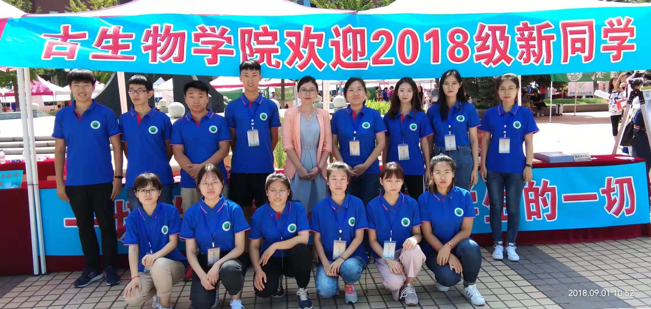 金秋九月,又到一年迎新时。2018年9月1日在全院师生的精心筹备下,展开了2018级迎新工作,丰富的展板内容展示公司的风采,巨大的恐龙模型突出专业的特色,精美的化石礼物更彰显贴心周到。
