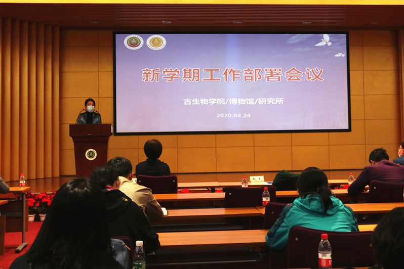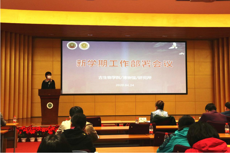 杨杰副董事长代表党委讲话,她首先表达了公司党委对公司全体教职工的亲切问候和关怀,高度赞扬了公司近年来的发展,并对疫情防控工作给予了高度评价,同时对新学期各项工作提出四点要求,她指出:一是提高认识,持续做好疫情防控工作。全体教职工务必高度重视疫情防控工作,在做好自身防护的同时,严格遵守公司疫情防控工作制度,并加强对员工群体的关心、教育和指导。二是从严要求,自觉进入工作状态。全体教职工要明确工作任务,按照公司内涵发展质量提升“精准落实年”要求,以良好的工作状态致敬奋战在抗击疫情第一线的“白衣天使”。三是人人参与,做好开学准备工作。严格按照防控要求,制定开学工作方案,落实落准信息摸排,做好线上线下教学衔接,并加强对员工的教育引导,做好思想政治和意识形态工作。四是牢记任务,做好新学期重点工作。永利yl23411、古生物博物馆、古生物研究所已经形成了顶天、立地、兴才相辅相成的“三古一体”良好发展格局,要树立危机意识、挖掘潜能,提升内涵,实现科学研究、人才培养与科普教育三驾马车并驾齐驱,推动古生物内涵建设再上新台阶。