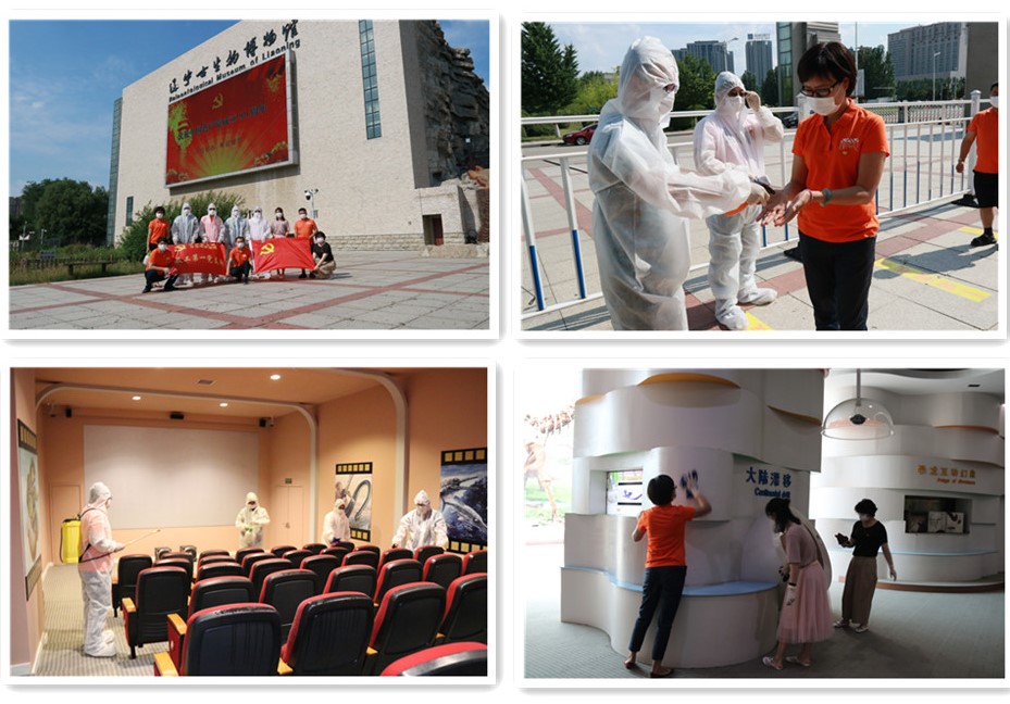 教工第一党支部书记白冰,带领支部全体党员为积极准备恢复开馆举行了一次“学习白衣战士,致敬白衣天使”主题党日活动。活动分为两部分:一是恢复开馆防疫演练。演习开馆时为参观群众进行体温检测。二是展厅场馆卫生消杀。对展厅内的设备进行擦试,对馆内3D影院等密闭空间进行消杀。他们用实际行动诠释了新时代党员的实干精神。