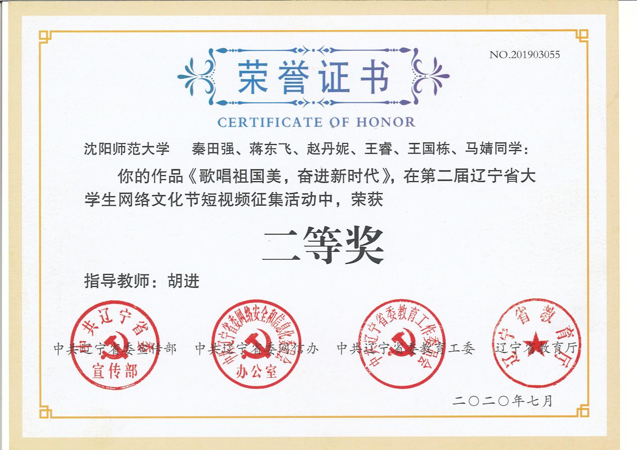 近日,由中共辽宁省委宣传部、中共辽宁省委网信办、中共辽宁省委教育工委、辽宁省教育厅2019年共同举办的第二届辽宁省老员工网络文化节公示了获奖名单,公司推荐的短视频作品《歌唱祖国美奋进新时代》荣获短视频和微电影组二等奖。该作品展示了公司师生以习近平新时代中国特色社会主义思想为指导,在教学、科研、科普等方面的取得丰硕成果,展现了公司师生团结一致、奋发向上的实干精神。