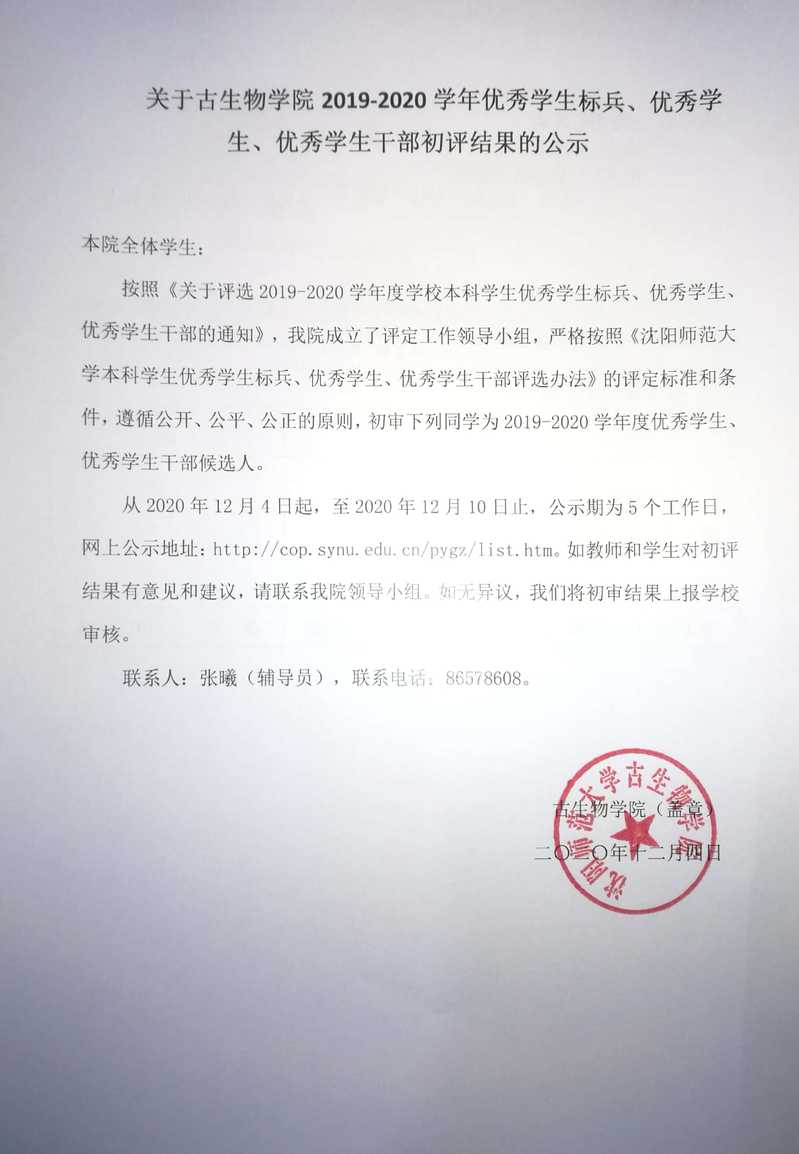 关于永利yl234112019-2020学年优秀员工标兵、优秀学 生、优秀员工干部初评结果的公示