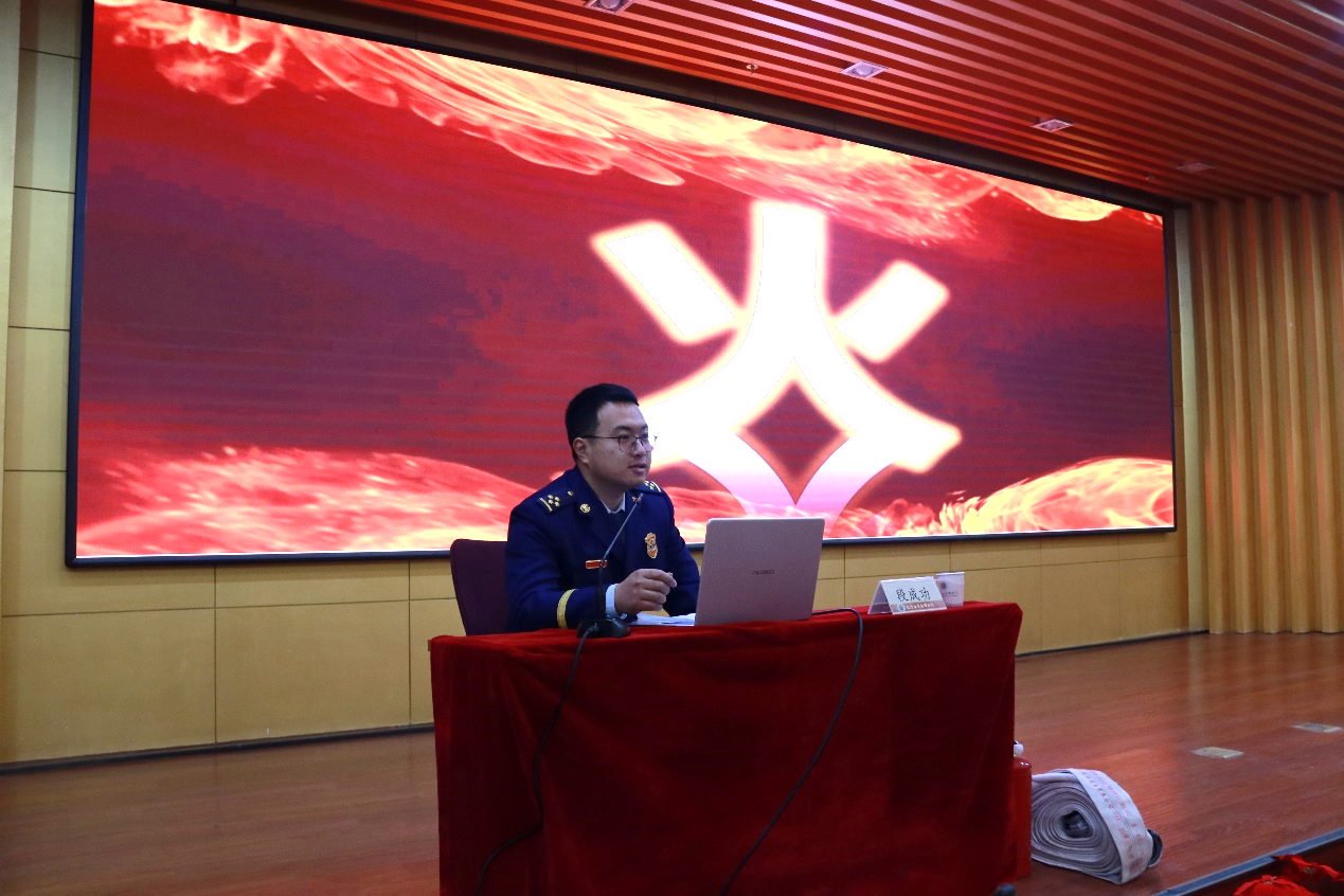 段成功指导员作消防知识讲座