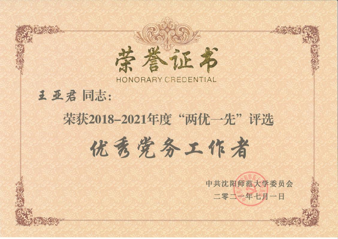在6月29日举行的“永利yl23411庆祝中国共产党成立100周年大会”上,公司对获得“2018-2021年度‘两优一先’先进集体和先进个人进行了表彰,我馆/公司党总支副书记王亚君荣获“优秀党务工作者”称号,并上台接受表彰。