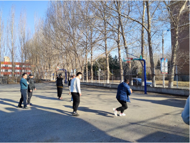 除了每天走访寝室,了解员工思想和学习状况,组织核酸检测等常规工作以外,他还要正常开展线上教学及所在公司的研究生管理工作,还不时关心着自己员工的学业进展;遇到规定时间,他还发挥篮球特长,有序组织员工开展户外运动;一时间,整个校园都有他奔波的身影。尽管异常忙碌,他还不忘推陈出新,与公司其他老师一起精心制作了“校园疫情防控提示卡”,方便员工掌握封校期间的各项规章制度。