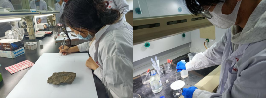 理论课结束后,谭笑老师带领2020级员工前往实验室,进行实际操作。在操作之前,谭笑老师亲自为同学们演示了一遍化石角质层分析实验的正确操作流程,并讲解分析了实验每一步的注意事项。