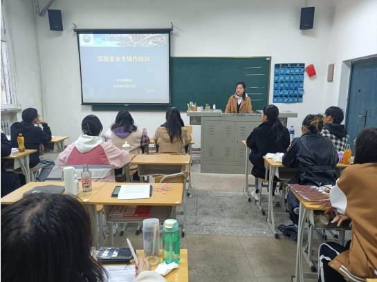 谭笑老师在课上指出实验操作人员应做到遵守实验室安全规章制度、了解实验室结构、掌握实验室仪器的正确操作,并重点强调所有进入实验室的人员和将要进入实验室的人员必须遵守实验室工作人员守则。