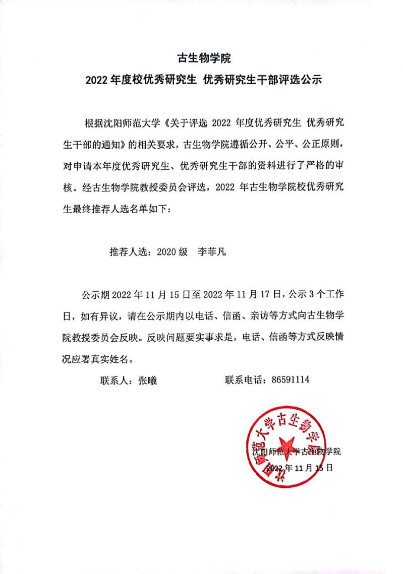 永利yl23411 2022年度校优秀研究生优秀研究生干部评选公示