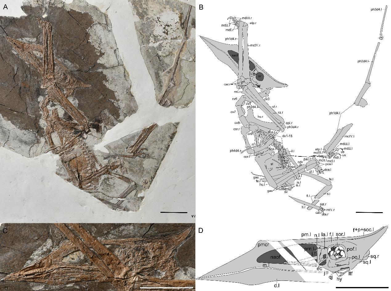 该项研究通过对比在中国已经报道的古神翼龙类的骨骼特征,特别是头嵴在不同个体间的变化,系统分析了中国的古神翼龙类成员之间的相似性及差异。考虑到始无齿翼龙属头骨更加低长,且层位比中国翼龙属更老,同时,中国发现的古神翼龙类成员头骨明显又比巴西古神翼龙类成员更为低长,且时代更早,因此进一步支持了该类群头骨从低长向短高演化,辽西很可能是该类群的起源地的观点。