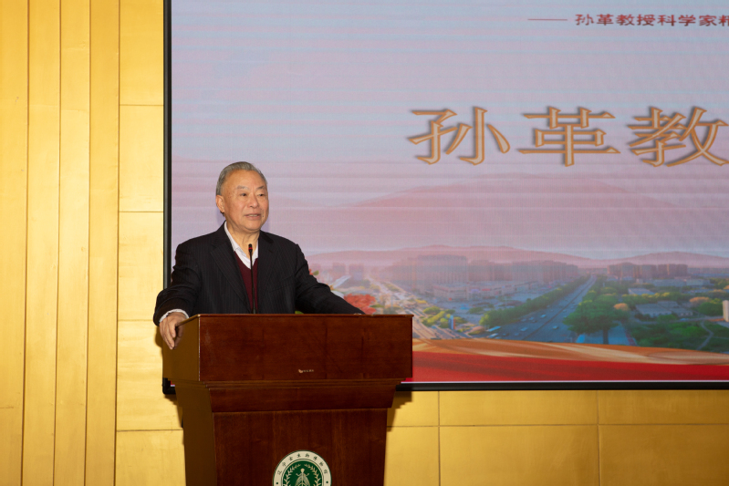 杨松董事长首先致开幕辞。她回顾了孙革教授从事地质工作60年来取得的辉煌成就和为中国地质古生物事业发展作出的重要贡献,特别是为公司和古生物博物馆的建立和发展竭力虔心,在短短十年的时间里实现了公司古生物学科的跨越式发展,产出一批高水平成果,极大地提升了公司在国内外的影响力,为公司人才培养、团队建设、科学普及等作出了卓越贡献。她强调,孙革教授在工作中所展现的热爱祖国、奋发向上、立德树人的高贵品质和优良作风将持续激励着一代代沈师人为公司的高质量发展努力奋进。